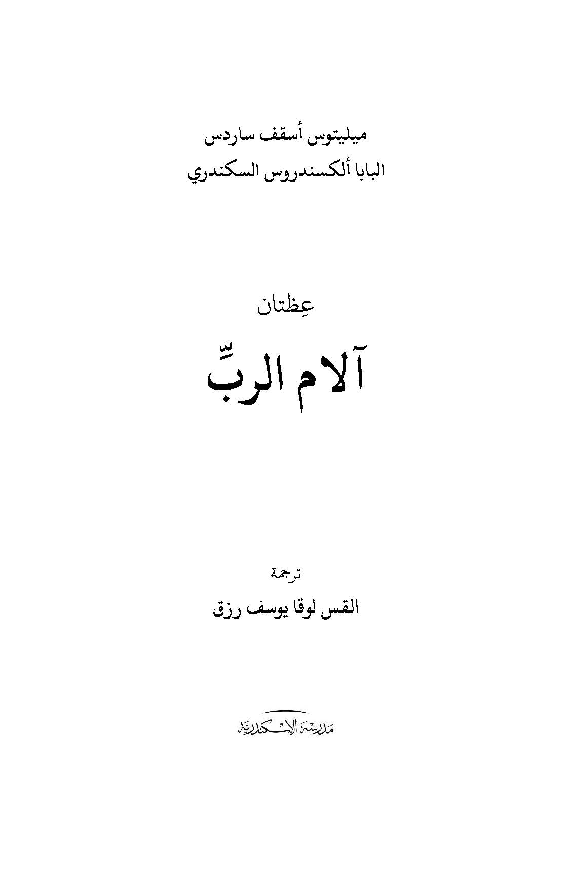 توحي الكلمات الافتتاحية للعظة الأولى ”في البصخة“ أنها عبارة عظة ألقيت في قداس بعد قراءة من العهد القديم، كما أن محتواها يتناسب مع أسبوع الالام فيها يُعِيد ميليتوس صياغة قصة الخروج، وخاصة تأسيس وليمة الفصح، وفسرت على أساس أنها ترمز لعمل المسيح الخلاصي. فكما ضَمَنَ ذبح الخروف ورشاش دمه للعبرانيين الخروج والهروب من عبودية مصر، هكذا أيضًا آلام المسيح وموته ضَمَنَ للمسيحي هروبه من الخطيئة والفناء. في العظة الثانية في النفس والجسد وآلام الرب فيقتفي البابا ألكسندروس آثار سقوط على كيانه، وكيف صار مائتا وانفصلت النفس عن الجسد. وهي عظة قوية في بلاغتها وبيانها، ومتأثرة في فكرها ولغتها بعظة ميليتوس أسقف ساردس.