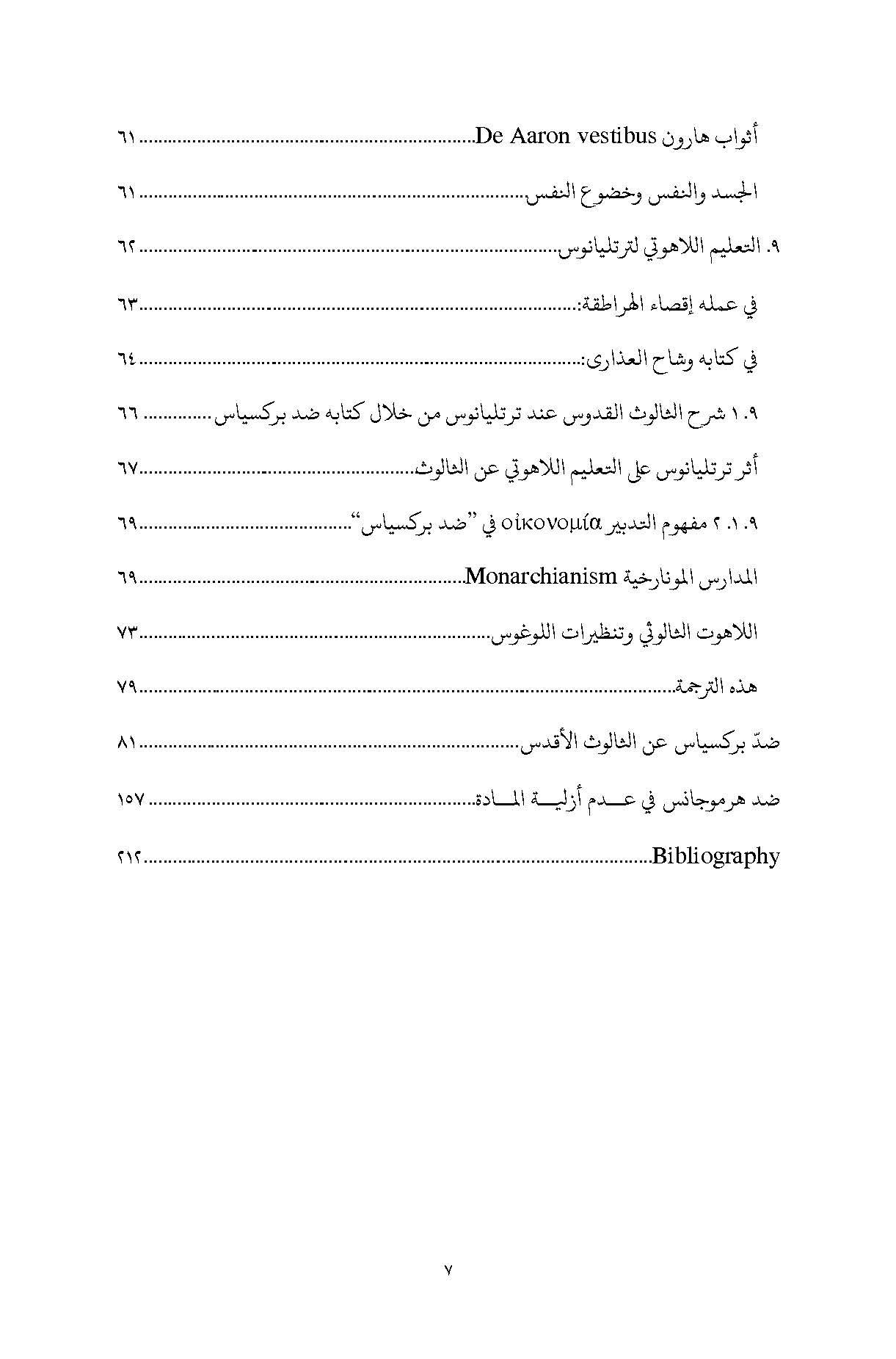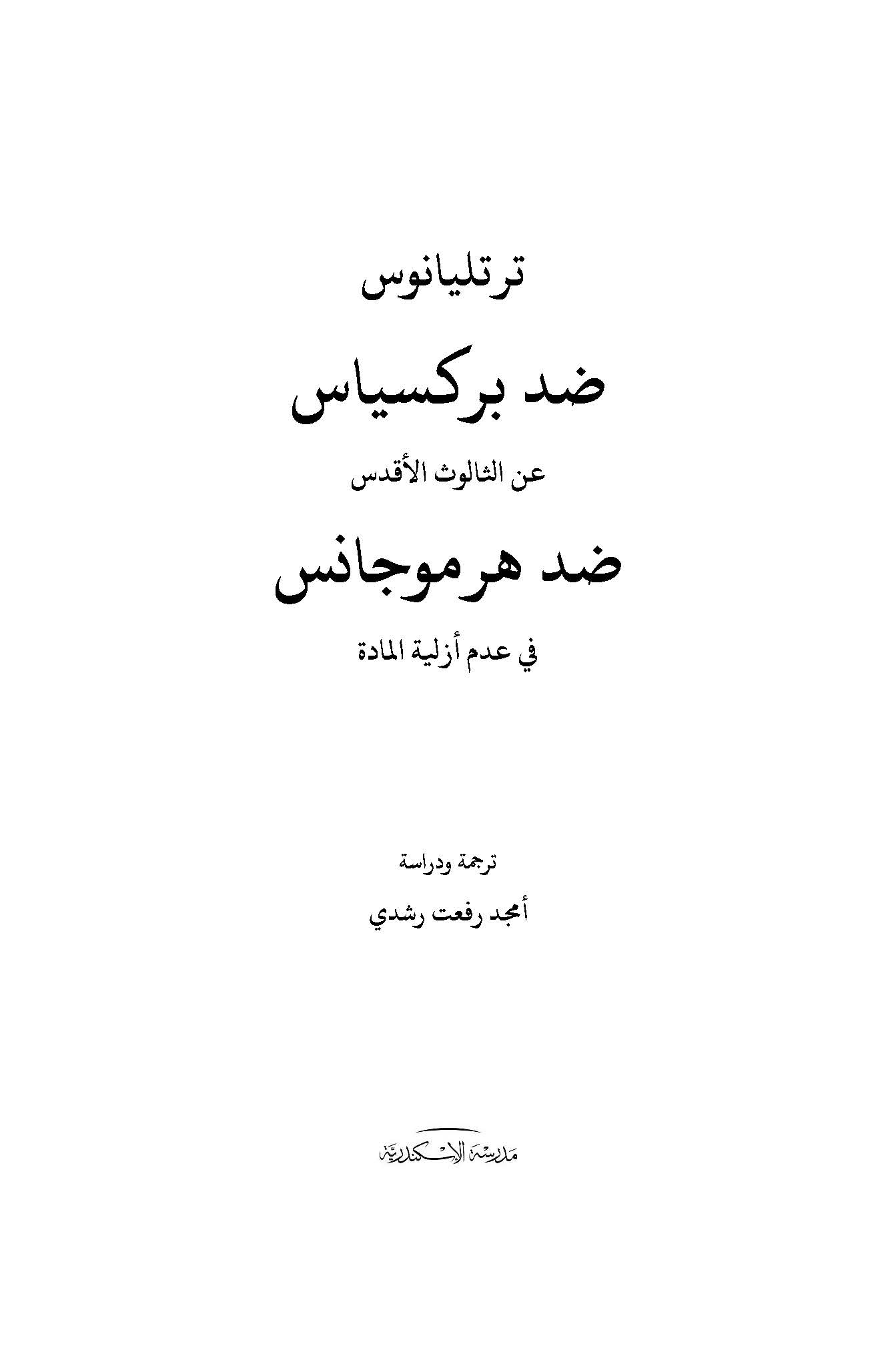 ما زلنا ندور في فلك المنابع أو المصادر الأولى … ما زلنا عالقين، ننظر في وجد، ونرتشف من هذه الأنوار والإشراقات النابتة من قلب حياة يسوع المملوءة نورا وخلاص وعذوبة ورحمة .. ترتليانوس كان نموذجا يعكس قوة التغيير الإلهية التي جعلته هذا المدافع القوي عن المسيحية من بعد السخرية من معتقداتها .. ولا عجب أن يصير ترتليانوس الإفريقي أبا اللاهوت الغربي بجدارة. هنا حديث أكاديمي موثق ومدقق عن حياته، وإشكالياته، وشخصه، وأعماله، هنا ترجمة لأهم عمل لأهوتي كتب باللاتينية في القرن الثالث الميلادي، أو بمعنى أدق في القرون الثلاثة الأولى، وهو ضد بركسياس، أو في شرح الثالوث القدوس، وهو عمل يشرح لك كيف استلمت وفهمت وعاشت الكنيسة الأولى نعمة الثالوث القدوس ومعرفته، ستجد لديه شروحات مُسْهَبة ووافية، وقد استفادت منها الكنيسة لاحقا. وهنا أيضًا ترجمة لكتاب ضد هر موجانس، أو في عدم أزلية المادة، وفيه يقدم الكاتب إيمان الكنيسة في الخَلْقِ من العدم بحكمة إنجيلية بالغة مشروحة بلغة أدبية رصينة مغلفة بصنعة فلسفية جديرة بالاعتبار تعكس إلماما معهودا من كتاب الكنيسة الأول بتاريخ الفلسفة وعلوم عصرهم وبلاغة لغاتهم.